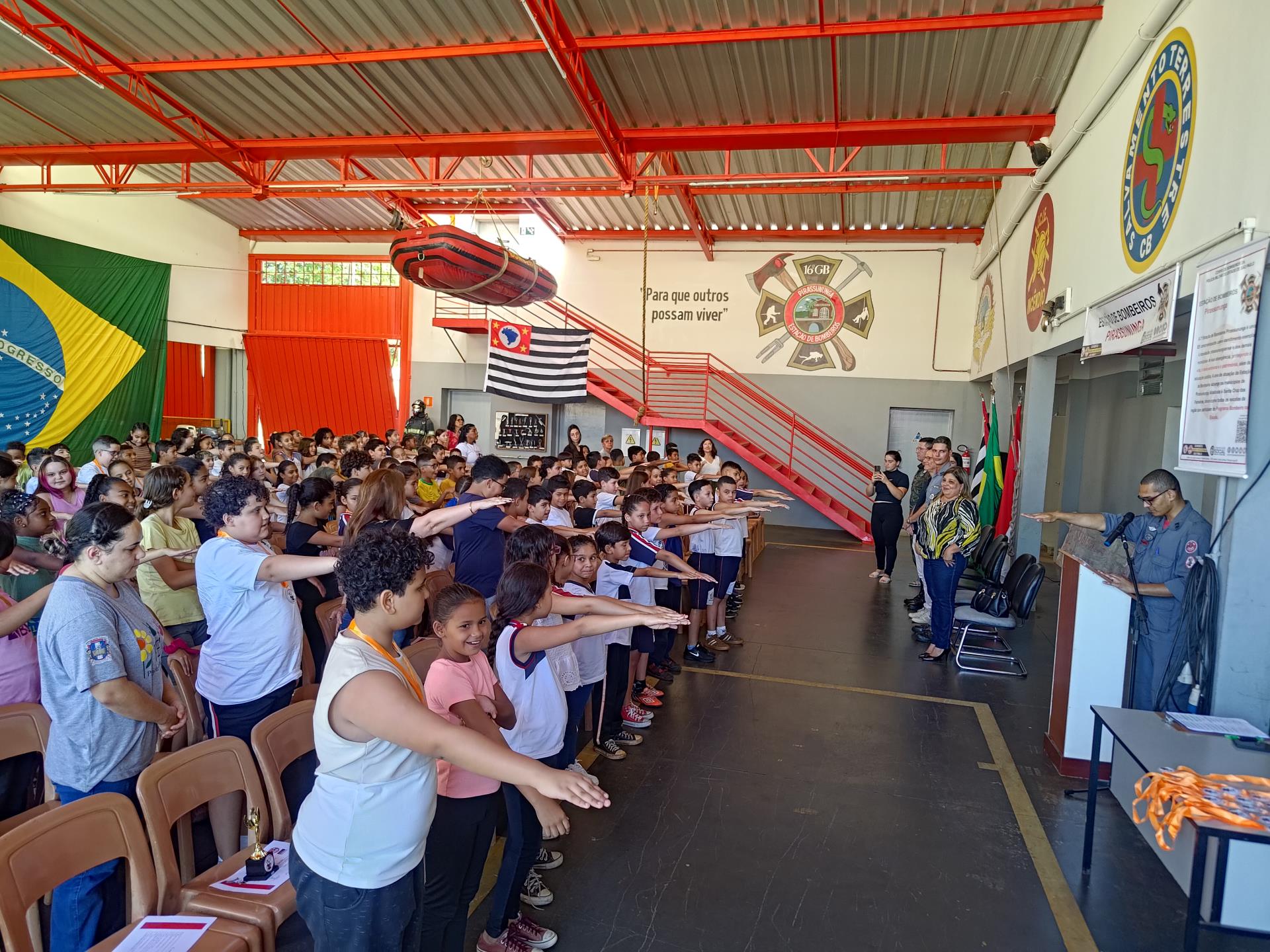 A Secretaria Municipal de Educação realizou, na segunda-feira (10), a formatura do Programa Bombeiro na Escola (PBE), que certificou 520 alunos dos 4ºs anos da rede municipal. A cerimônia ocorreu no Quartel do Corpo de Bombeiros de Pirassununga, local onde os estudantes concluíram o treinamento realizado entre 11 de agosto e 3 de setembro.