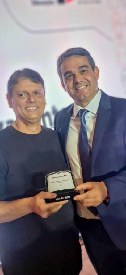 Durante a cerimônia, o Prefeito Fernando Lubrechet, o Secretário Municipal de Educação, Fernando Del Nero, e a Articuladora Municipal Tatiane Regina dos Santos receberam a honraria, representando o Município.