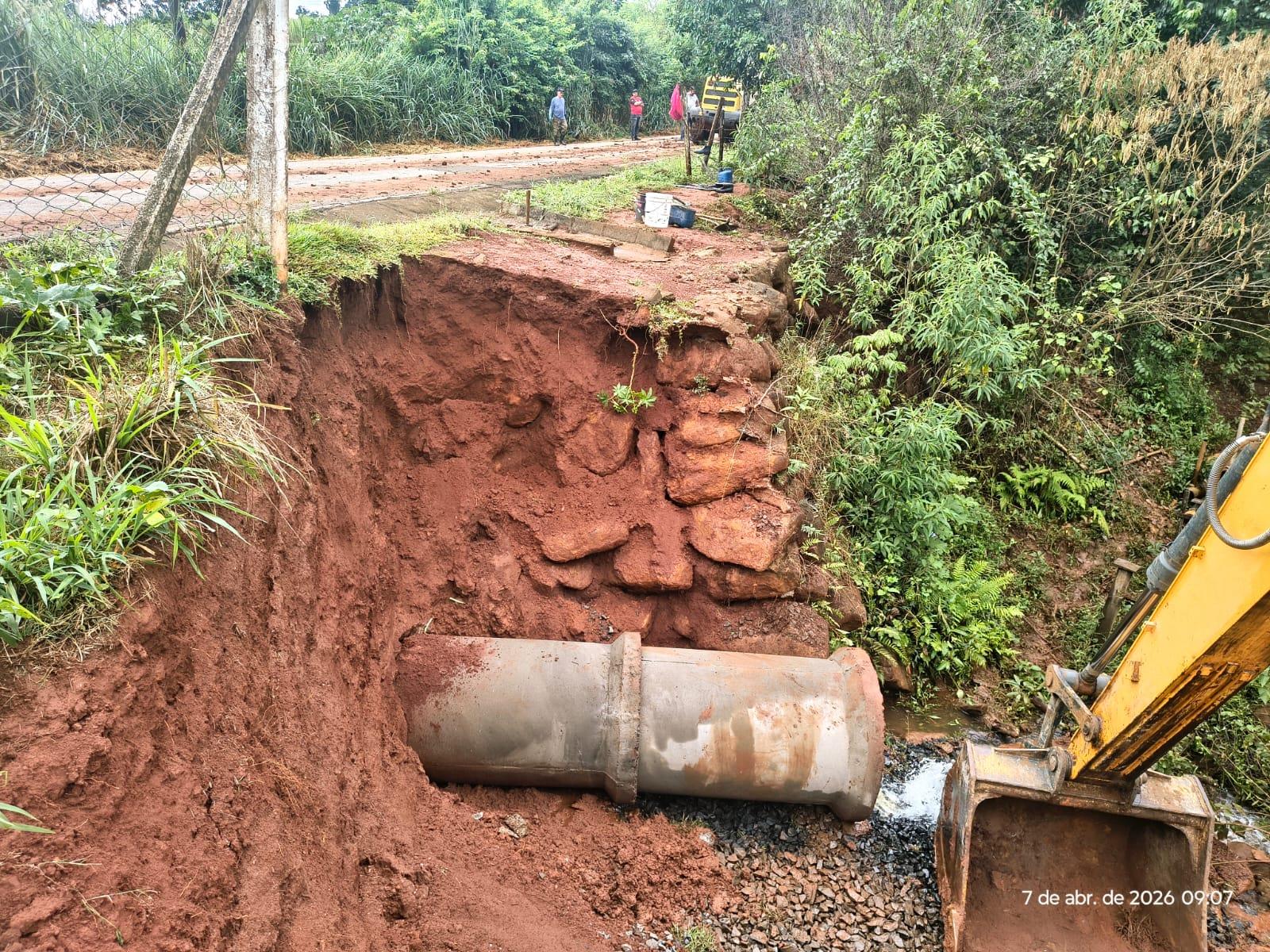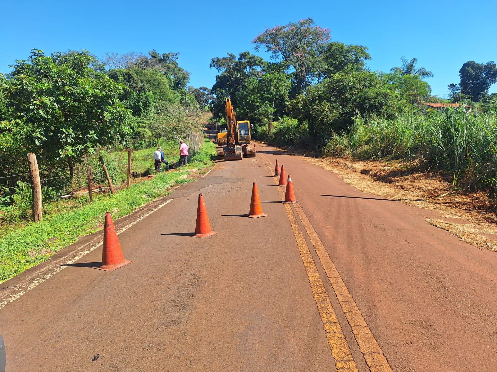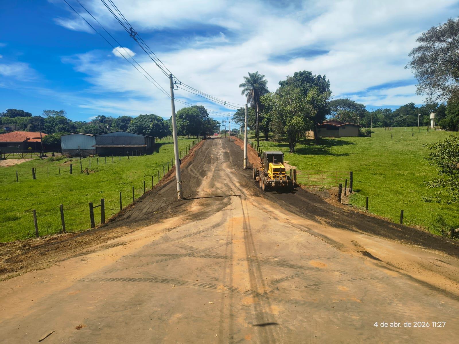 Na Vicinal Henrique Rosolen (Estrada do Taquari), os trabalhos incluíram a execução de drenagem para escoamento adequado das águas pluviais e a implantação de contenções com pedras nos barrancos da faixa de domínio, garantindo maior estabilidade do solo e segurança aos usuários.