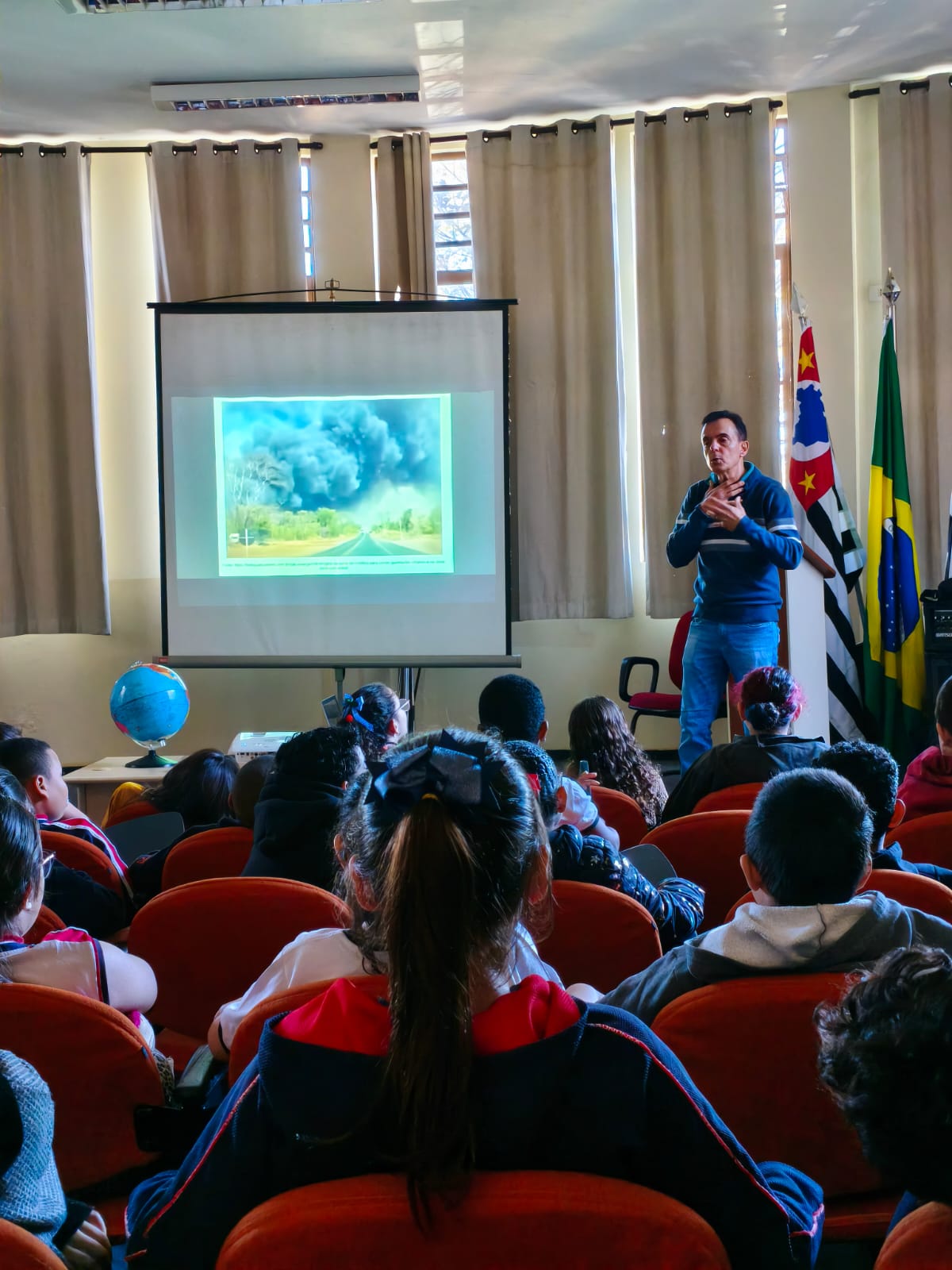 O público foi formado por estudantes das EMEFs Arcídio Giacomelli e Washington Luís, que acompanharam apresentações sobre os impactos ambientais, sociais e sanitários das queimadas. Foram tratados temas como poluição do ar, danos à saúde respiratória, prejuízos à vegetação urbana, além de orientações práticas sobre prevenção, cuidados e preservação ambiental.