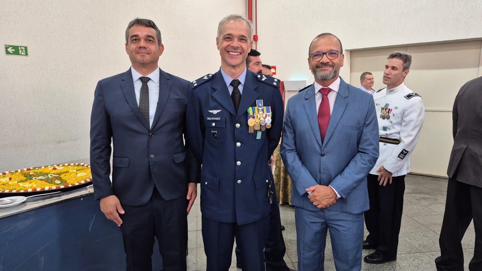 Pelo Executivo Municipal, participaram o Prefeito Fernando Lubrechet e o Secretário Municipal de Administração, Carlos Alberto de Azevedo, acompanhando a solenidade que marcou a transmissão do cargo do Major-Brigadeiro do Ar Eric Breviglieri ao Brigadeiro do Ar Gustavo Pestana Garcez.