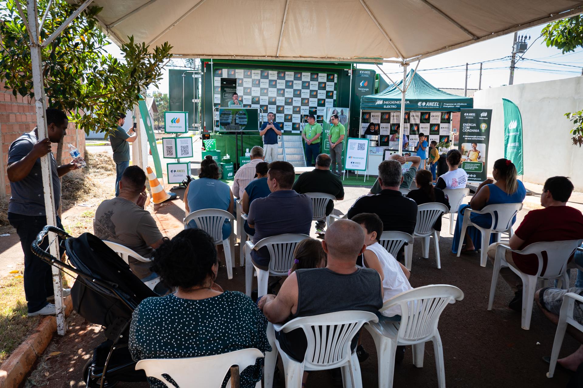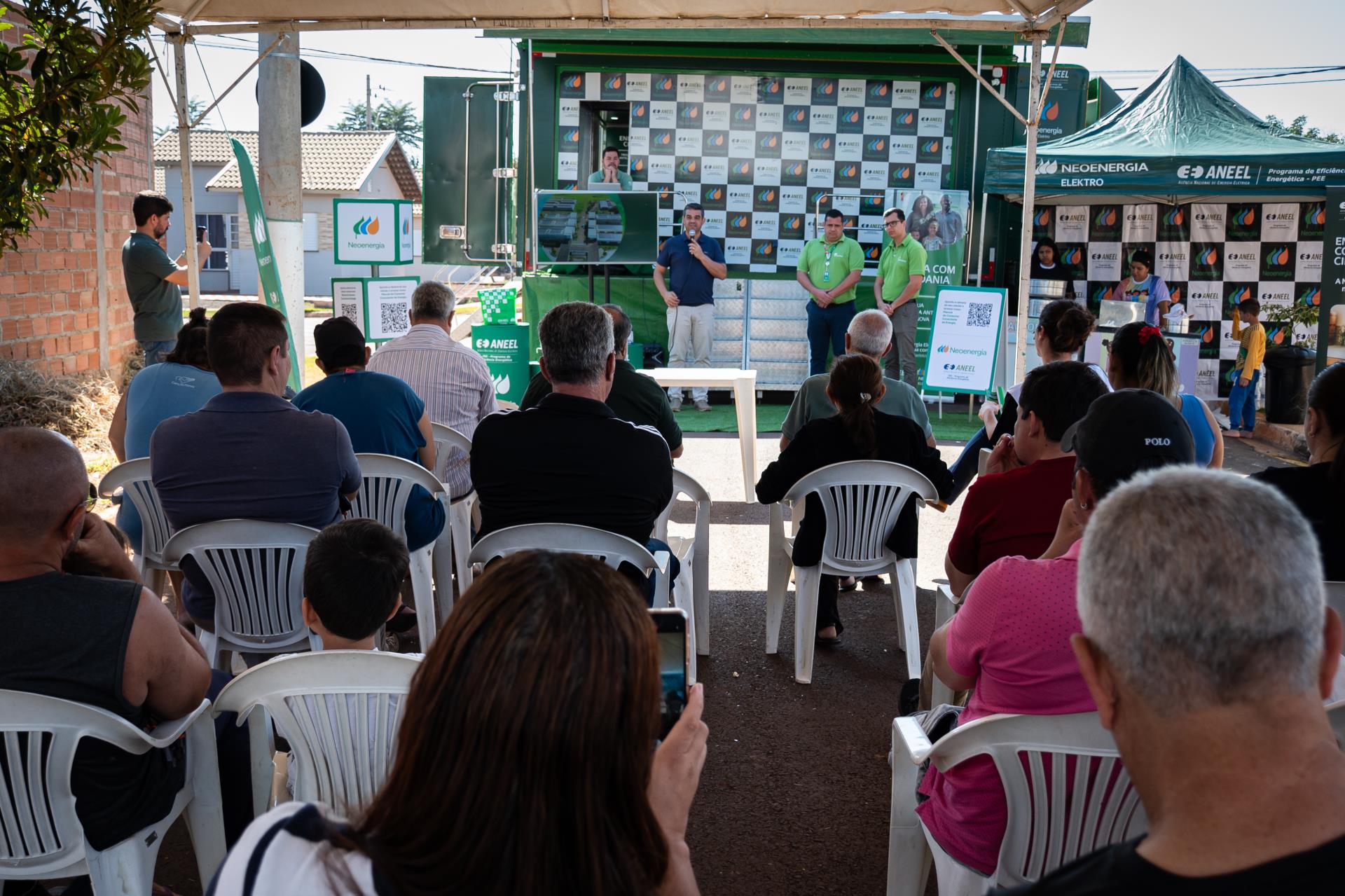 Em destaque nesta edição, a parceria com a Neoenergia Elektro trouxe uma ação especial voltada à energia limpa e consumo consciente. Em uma estrutura montada no local, a empresa ofereceu palestras educativas, atividades recreativas para as crianças, distribuição de alimentos e atendimento direto à população. Cerca de 100 moradores puderam se inscrever para o programa que prevê a instalação gratuita de placas solares e a substituição de geladeiras antigas por modelos mais eficientes, tudo sem custo. O projeto é voltado para clientes de baixa renda contemplados pela Elektro dentro do programa.
