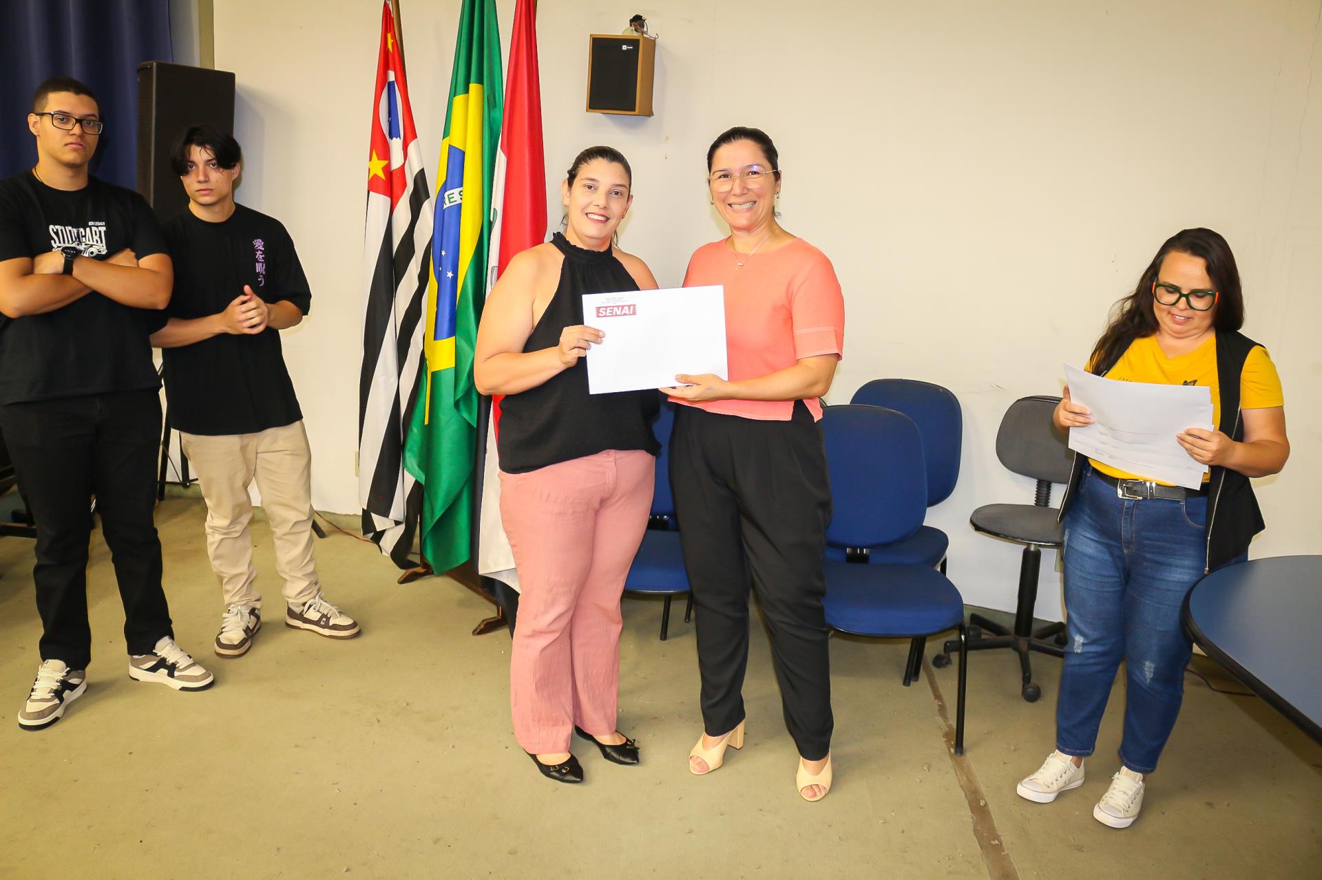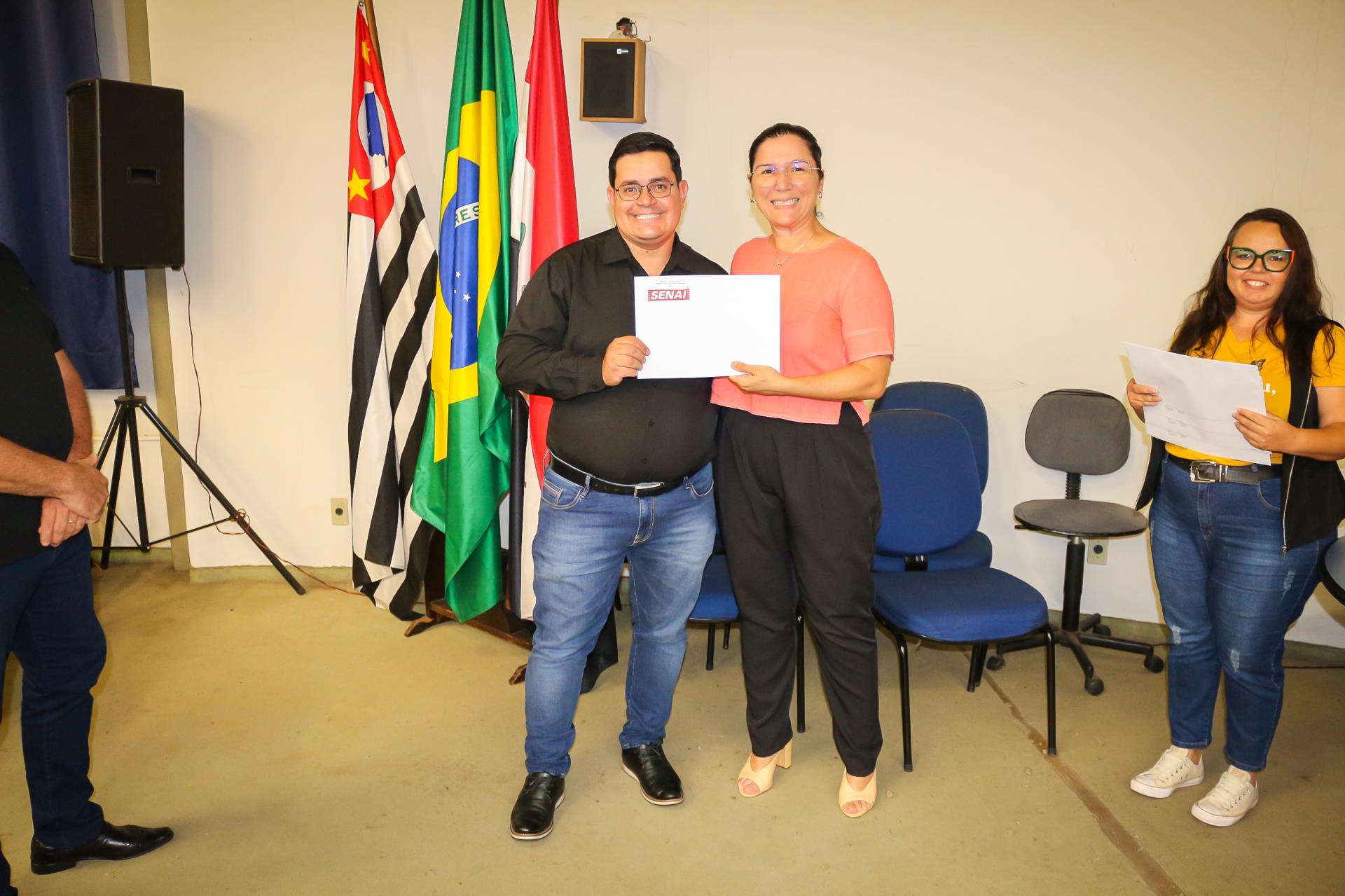 O Prefeito Fernando Lubrechet não pôde estar presente, em razão de agenda oficial na cidade de São Paulo. Representando o Chefe do Executivo, compôs a mesa de autoridades a Chefe de Gabinete, Silvana Forcellini Pedretti. Também integraram o dispositivo o Secretário Municipal de Comércio e Indústria, Luiz Carlos Martins, e a Assistente de Apoio Técnico do SENAI, Jaqueline Nunes da Costa.