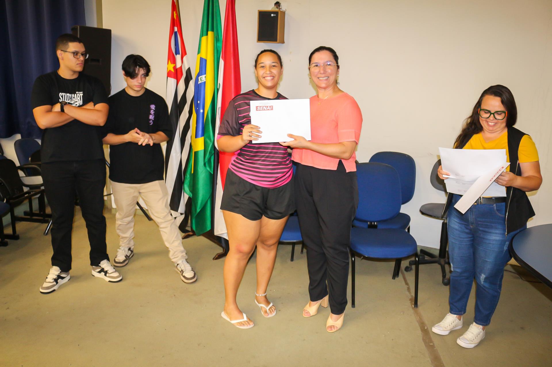 A Prefeitura Municipal de Pirassununga, por intermédio da Secretaria Municipal de Comércio e Indústria e em parceria com o Serviço Nacional de Aprendizagem Industrial (SENAI), realizou na noite desta quinta-feira, 26 de fevereiro, a cerimônia de entrega de certificados aos alunos concluintes de cursos profissionalizantes gratuitos. O evento aconteceu no Auditório do Paço Municipal.