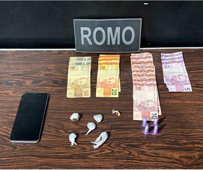 Durante patrulhamento preventivo, equipes da ROMO apreenderam um adolescente por ato infracional análogo ao tráfico de drogas após localizarem porções de entorpecentes já embaladas para comercialização, dinheiro em espécie e outras substâncias ilícitas em sua residência. Em outra ocorrência, no bairro Parque Aviação, um homem foi preso em flagrante por tráfico após a apreensão de grande quantidade de crack, cocaína e maconha, além de balanças de precisão e materiais utilizados para fracionamento.