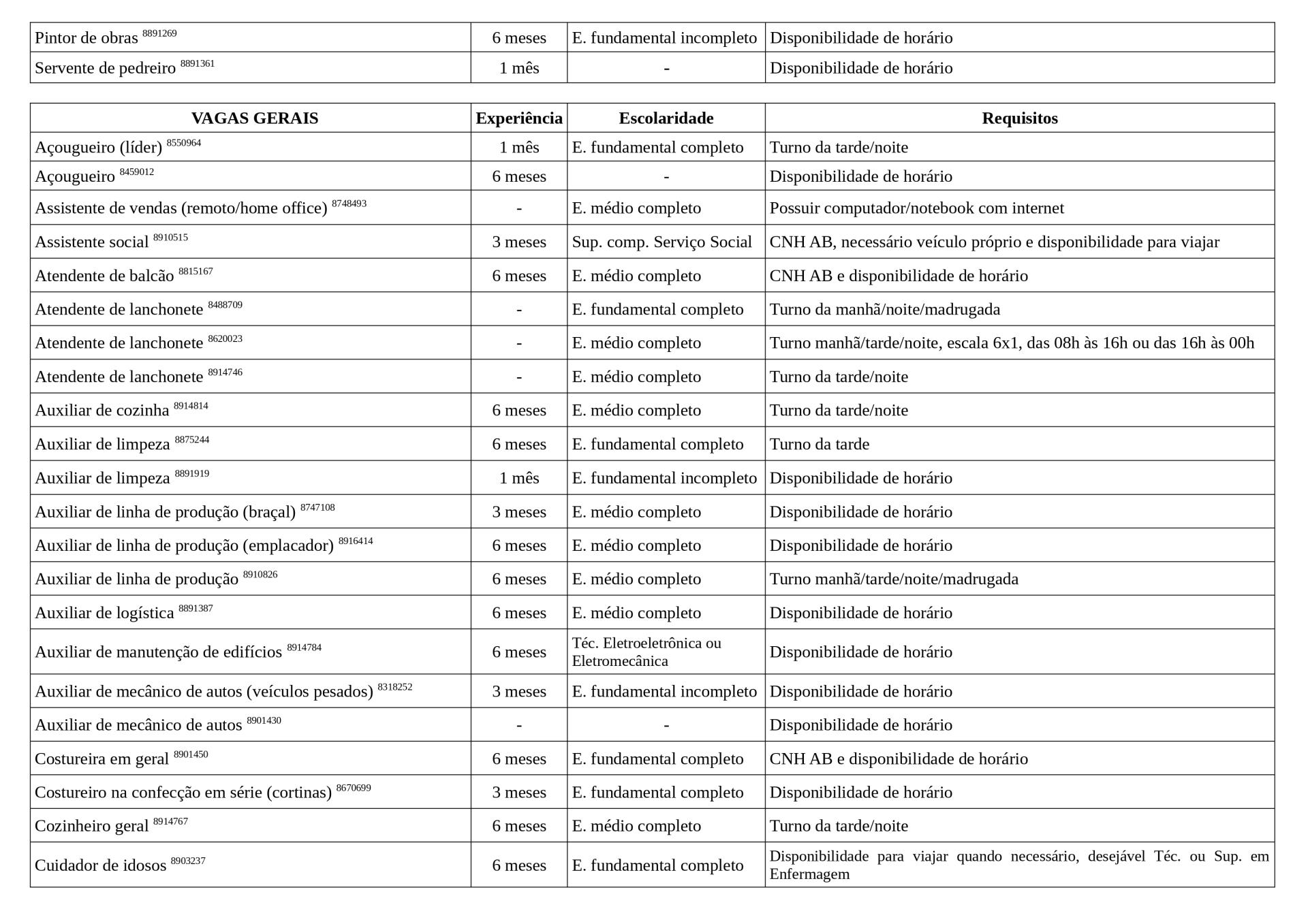Arquivo em PDF com as vagas: Vagas Disponíveis 20-03-2026