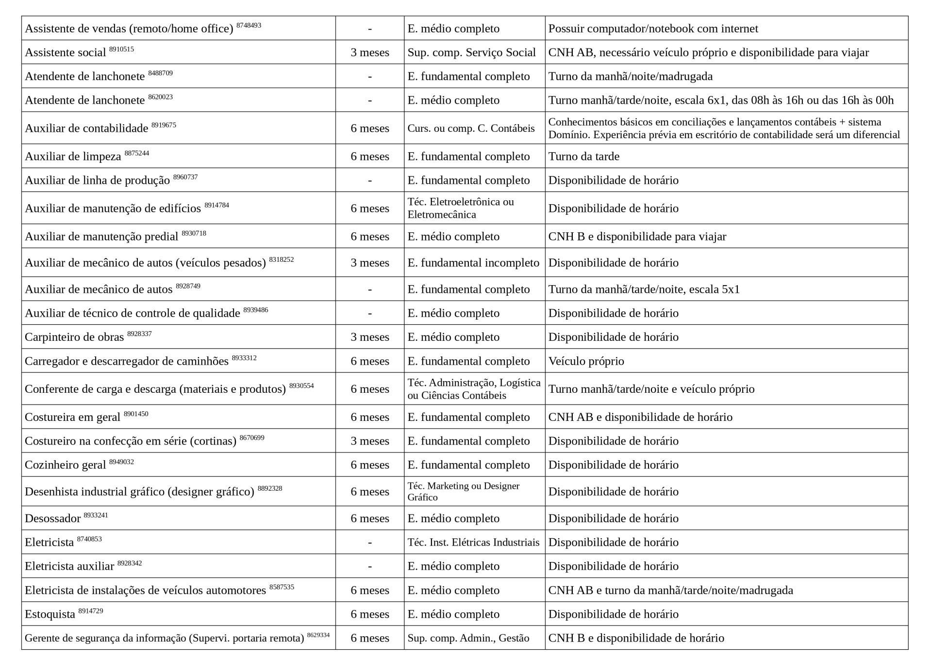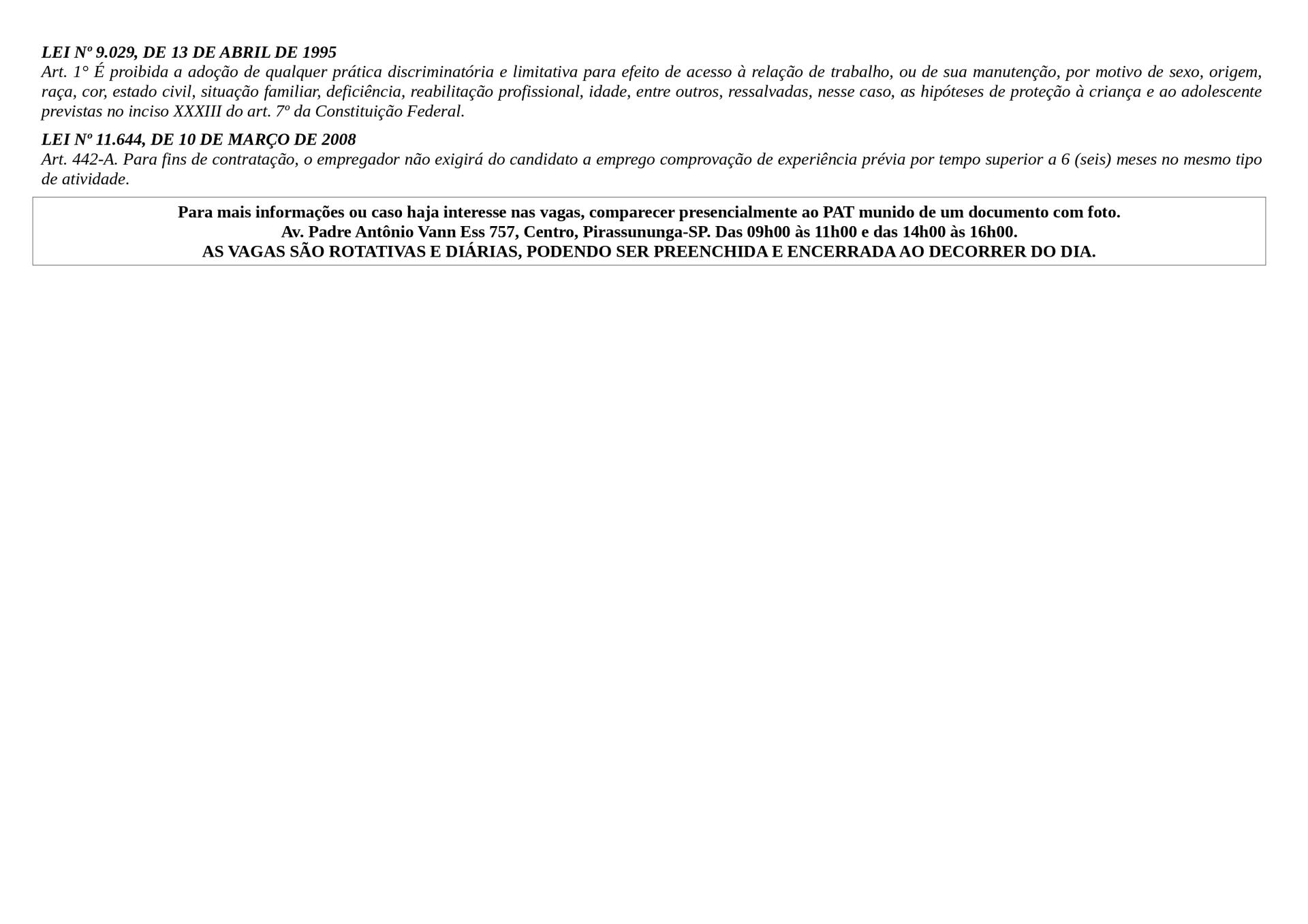 Arquivo em PDF com as vagas: Vagas Disponíveis 27-04-2026