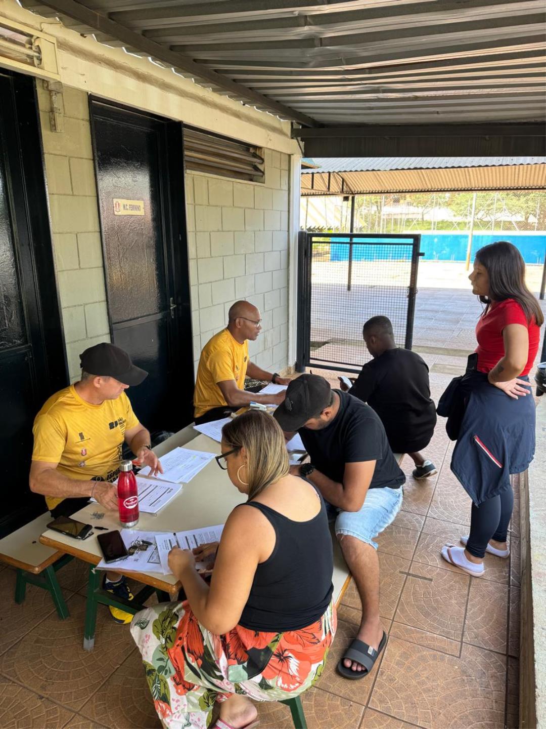 Na sequência das atividades, os profissionais estiveram na Escola CAIC para atendimento aos pais e responsáveis interessados na rematrícula dos alunos, garantindo a renovação das vagas e a continuidade do acompanhamento dos participantes ao longo do projeto.