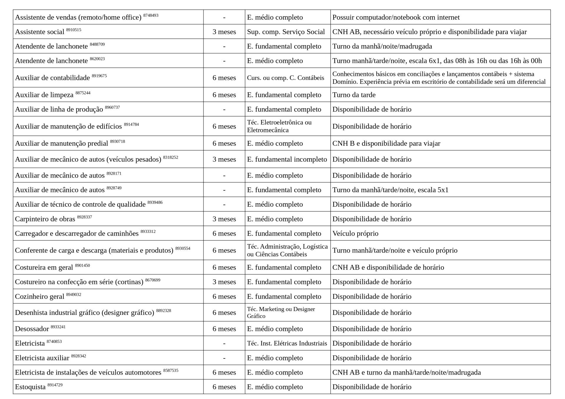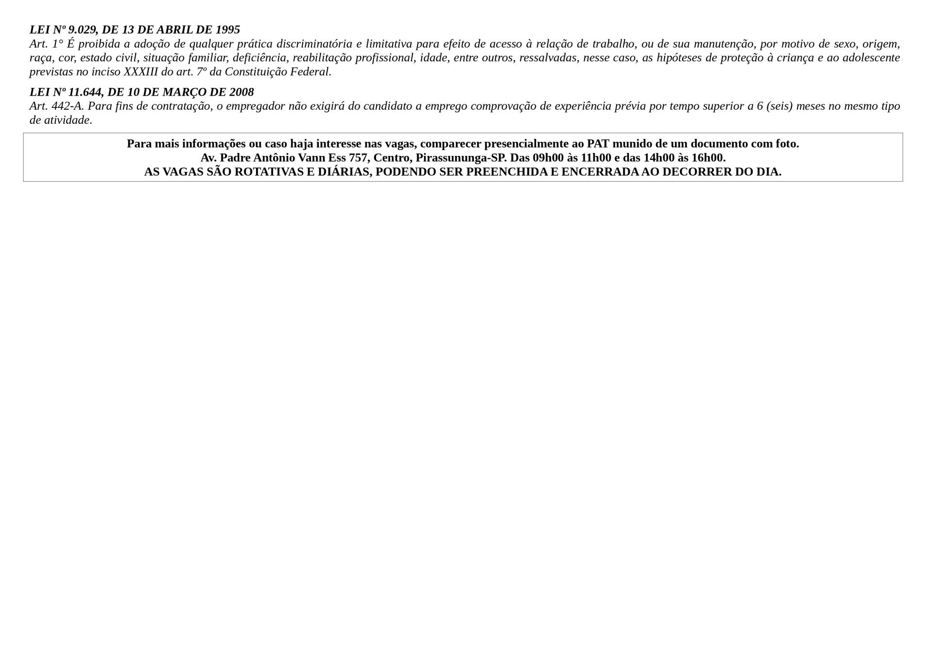 Arquivo em PDF com as vagas: Vagas Disponíveis 23-04-2026